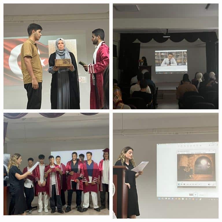 Okulumuzda 2024-2025 eğitim ve öğretim yılı 12. sınıf öğrencilerimizin mezuniyet programı büyük bir coşku ve gururla gerçekleştirildi. Uzun ve özverili bir eğitim yolculuğunu başarıyla tamamlayan öğrencilerimiz, mezuniyet belgelerini alarak lise hayatlarına veda etti.