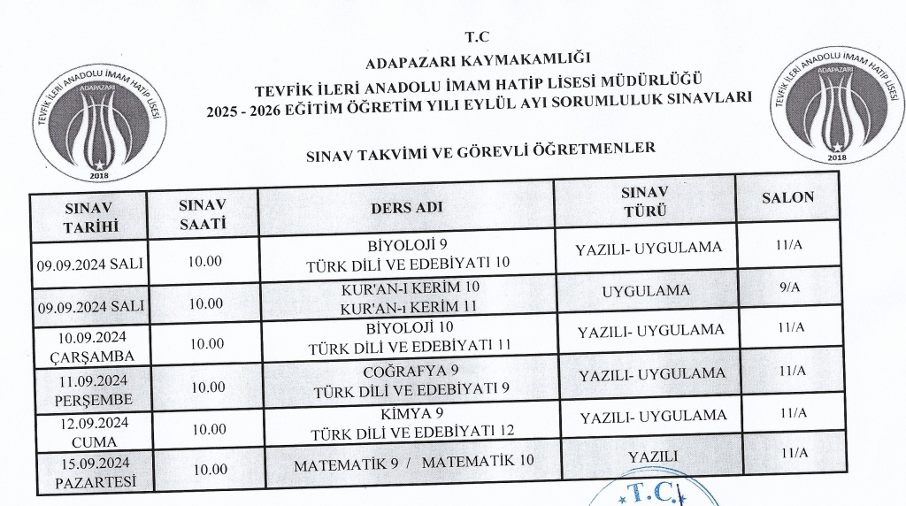 Sorumluluk sınavı olan öğrencilerimizin takvim doğrultusunda sınavlarına hazırlıklı olmalarını temenni ederiz.